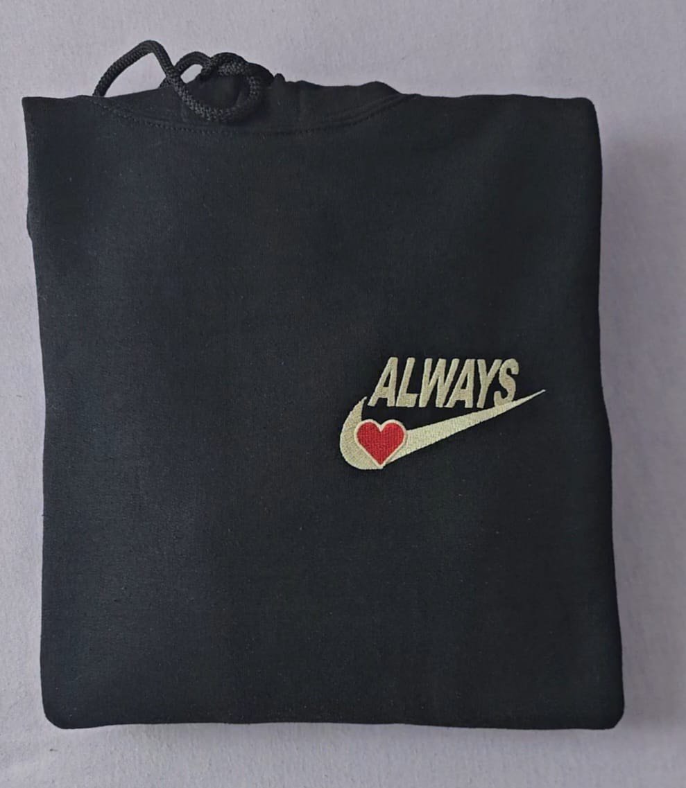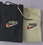 If you want to add any initials please leave a note at checkout with what initial goes on the hoodie with "Always" and what initial goes on the hoodie with "Forever"