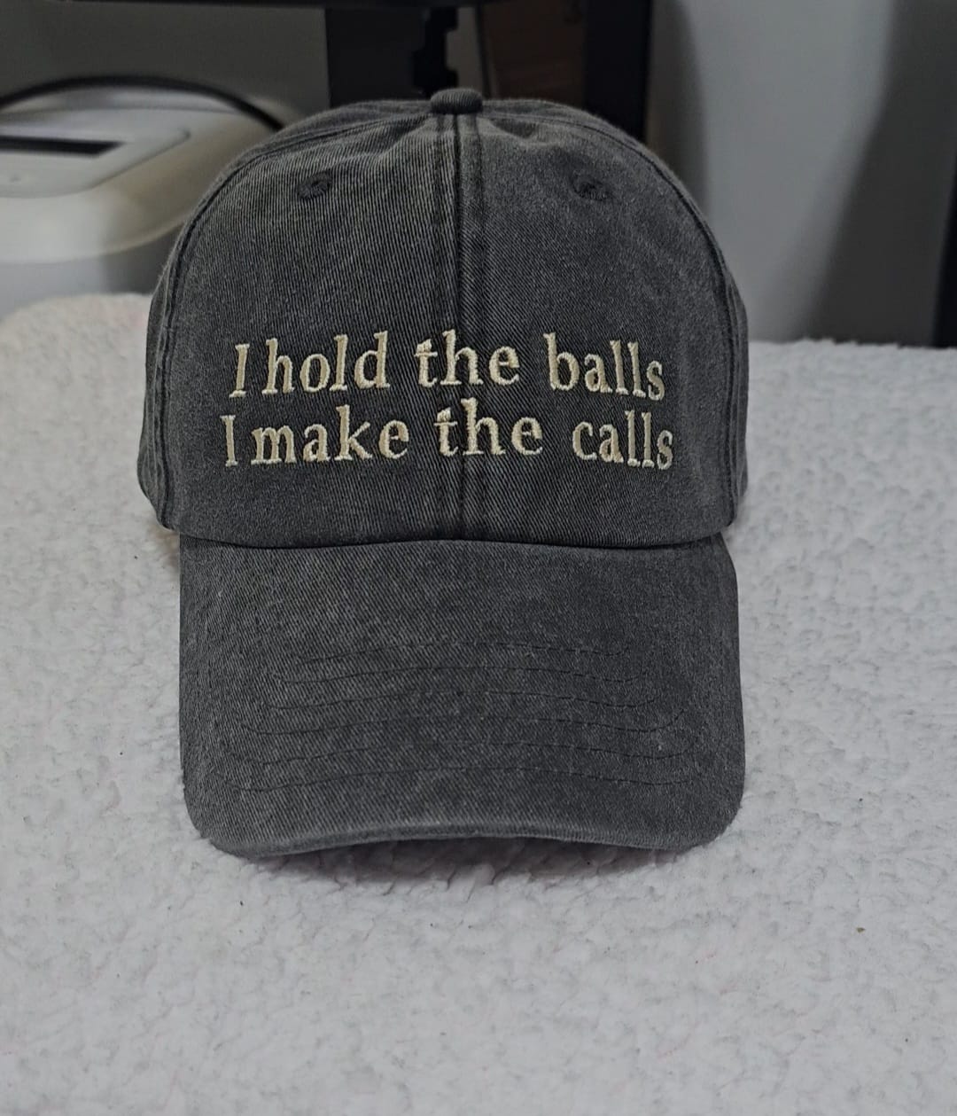 I hold the balls cap